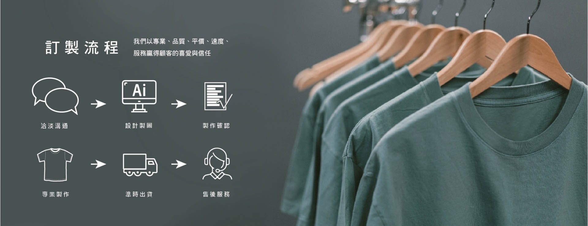 專注於客製過程之溝通、設計、製作、配送的每個細節